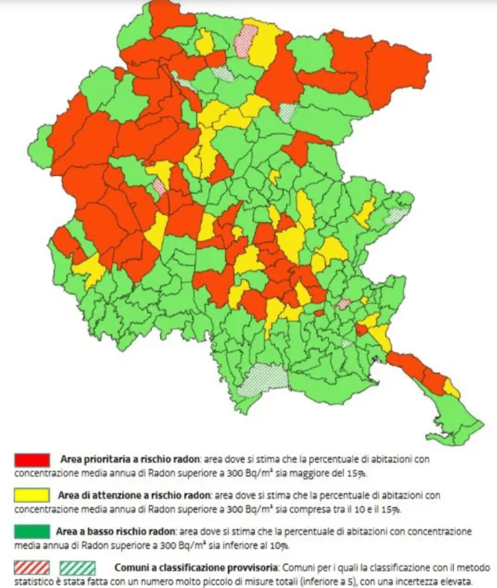 Questo significa che nei 51 comuni identificati oltre al monitoraggio del Radon nei sotterranei, seminterrati e interrati c’è l’obbligo del monitoraggio anche ai piani terra come previsto dagli art.11 e 16 del D.Lgs. 101/2020